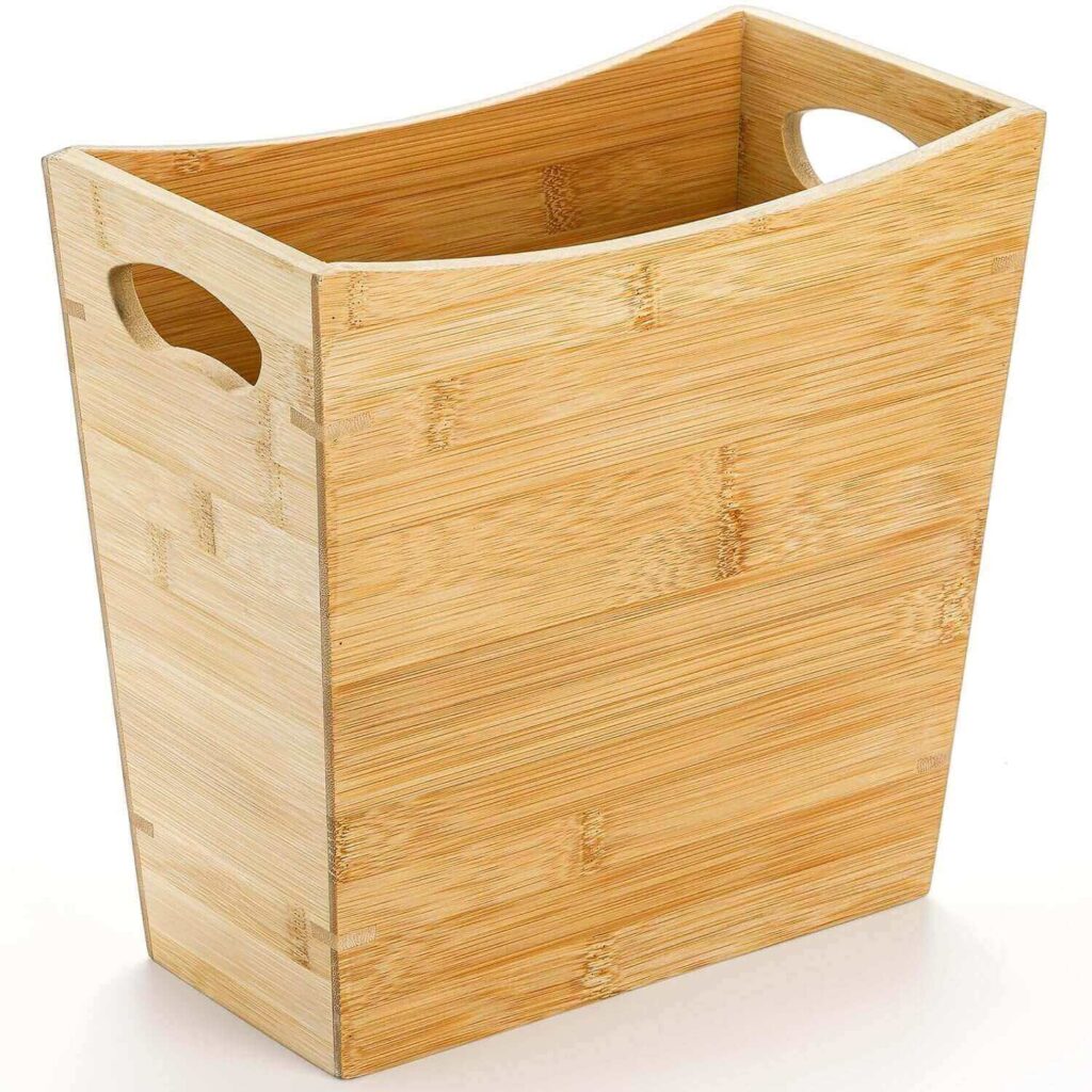 Add a touch of natural style with the TOPZEA bamboo recycling trash can, perfect for narrow spaces beside the bed, desk, or bathroom. Its lightweight yet sturdy design, built-in handles, and smooth finish make it functional and easy to move. Reviewers love its aesthetic appeal, versatile use, and how it doubles as a decorative storage or flower basket.