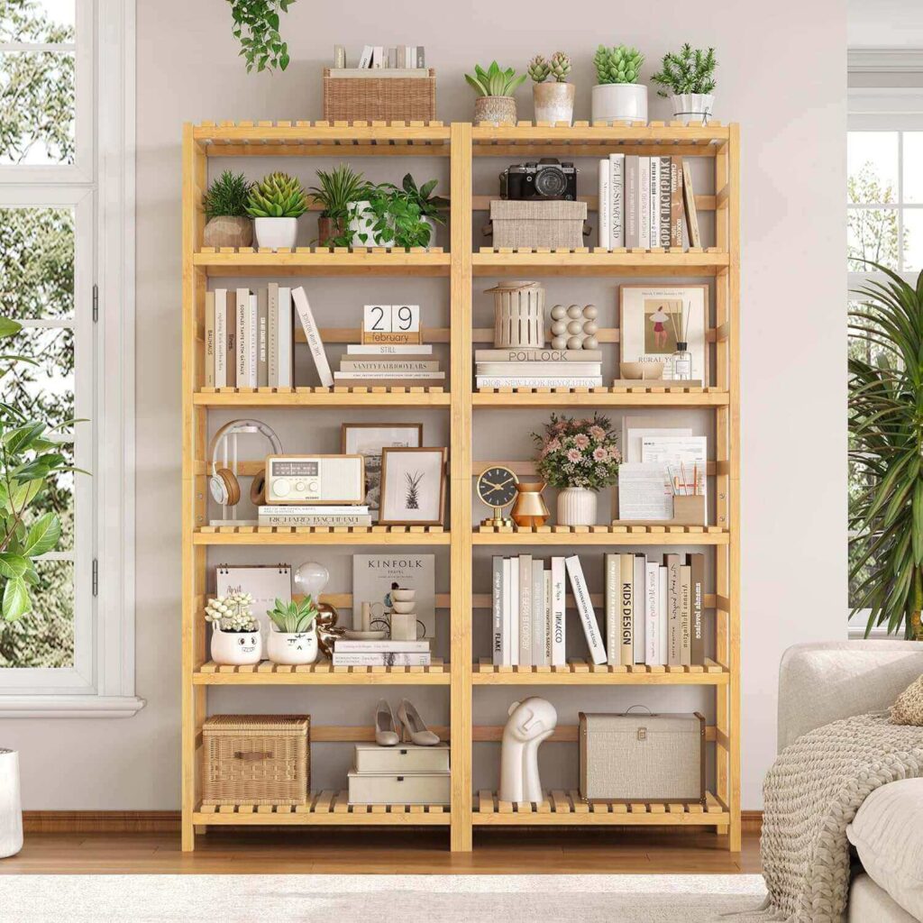 Organize and display with this 6-tier bamboo storage rack, offering ample space for kitchenware, books, plants, or toiletries. Its adjustable shelves and durable bamboo construction make it both functional and stylish in any room. Users praise its sturdiness, easy assembly, and versatile design that enhances storage while adding natural elegance.