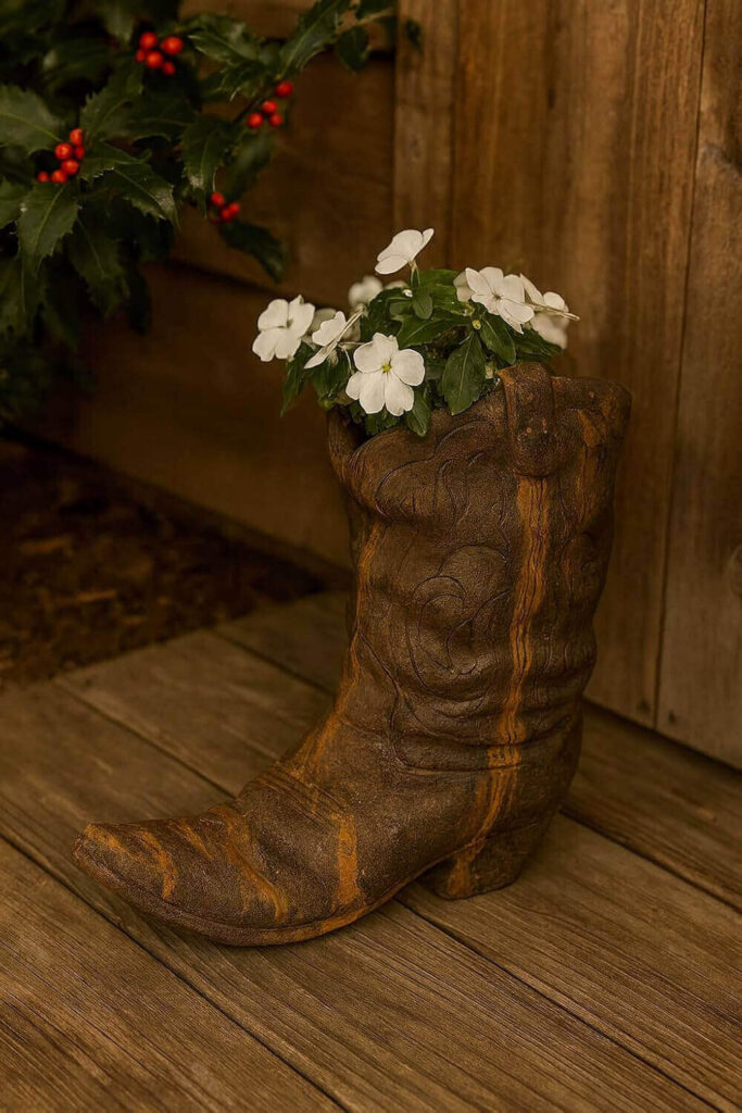 Add rustic western charm to your garden or porch with this handcrafted cowboy boot planter. Made from heavy-duty concrete with weathered detailing, it’s built to withstand sun, rain, and frost while staying a striking focal point. Perfect for succulents, herbs, or decorative arrangements, it’s a unique, conversation-starting planter that elevates outdoor décor.