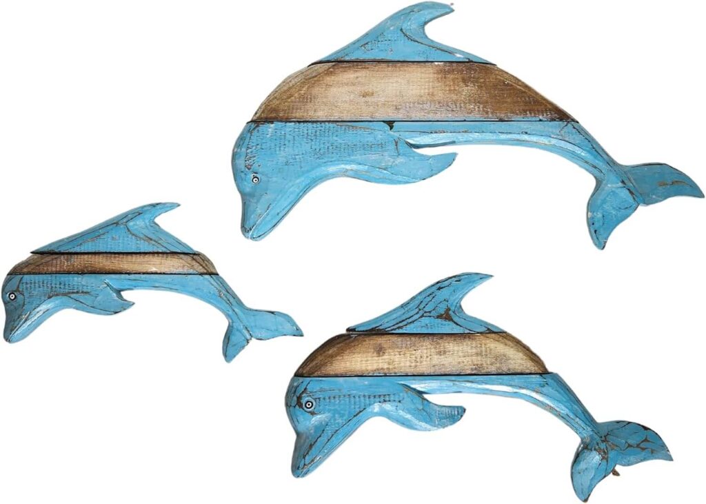 Bring a relaxed island vibe into your space with this hand-carved dolphin wall art set, perfect for creating a serene nautical wall decor look. Crafted from wood with a tropical coastal feel, it adds warmth and charm to bars, pool areas, or any beach home decor setting. Customers mention it looks great exactly where they placed it, making it a simple yet impactful decorative choice.