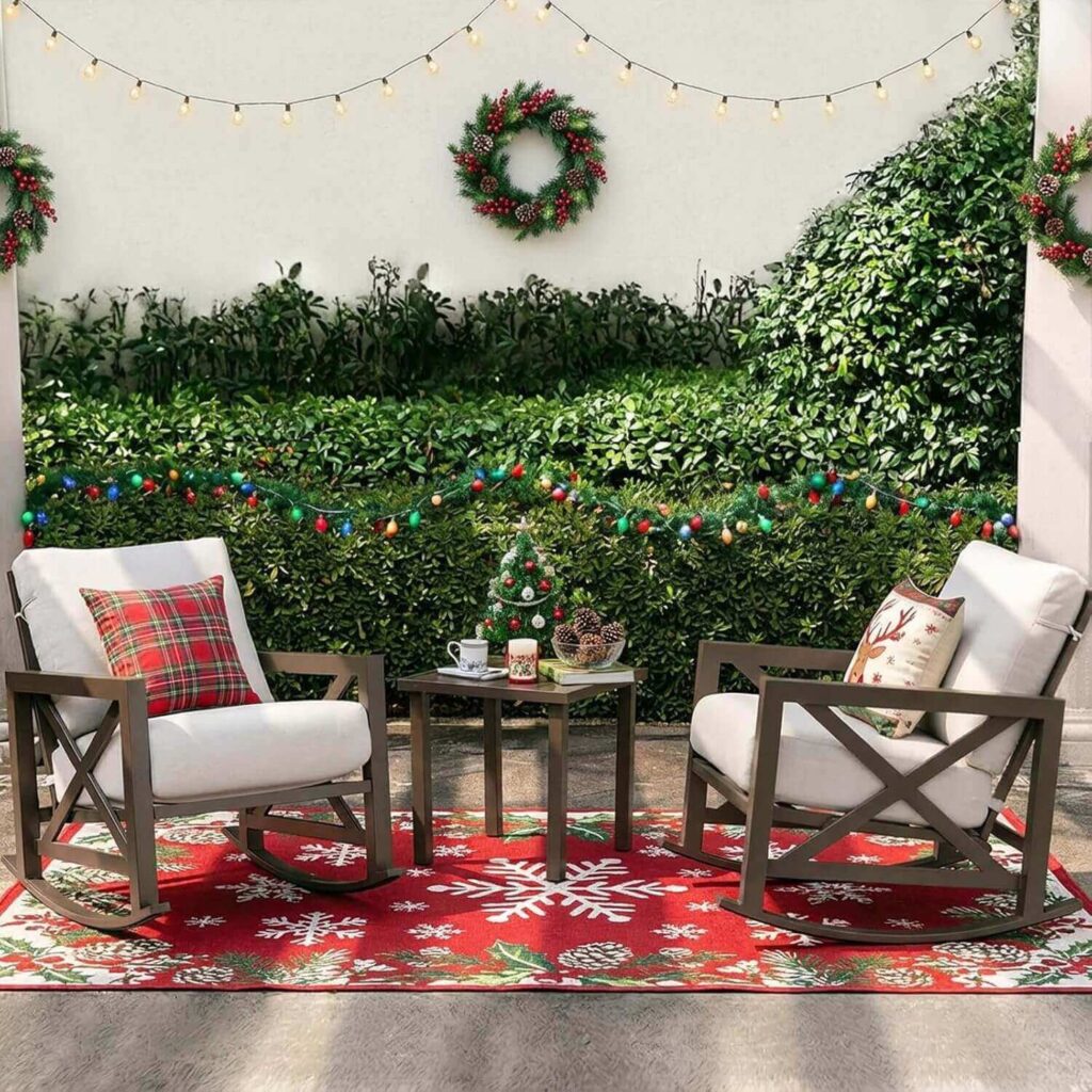 Transform your patio with the 3-Piece Rocking Patio Bistro Set (Color:Green). Built with a sturdy powder-coated steel frame and plush 6.5-inch cushions, these rocking chairs provide lasting comfort and support. Reviewers rave about how comfortable and durable they are, even in storms, and love the included waterproof covers for extra protection. Easy to assemble and perfect for your backyard, porch, or balcony, this set combines style, functionality, and all-weather performance.