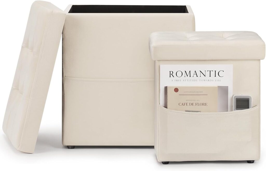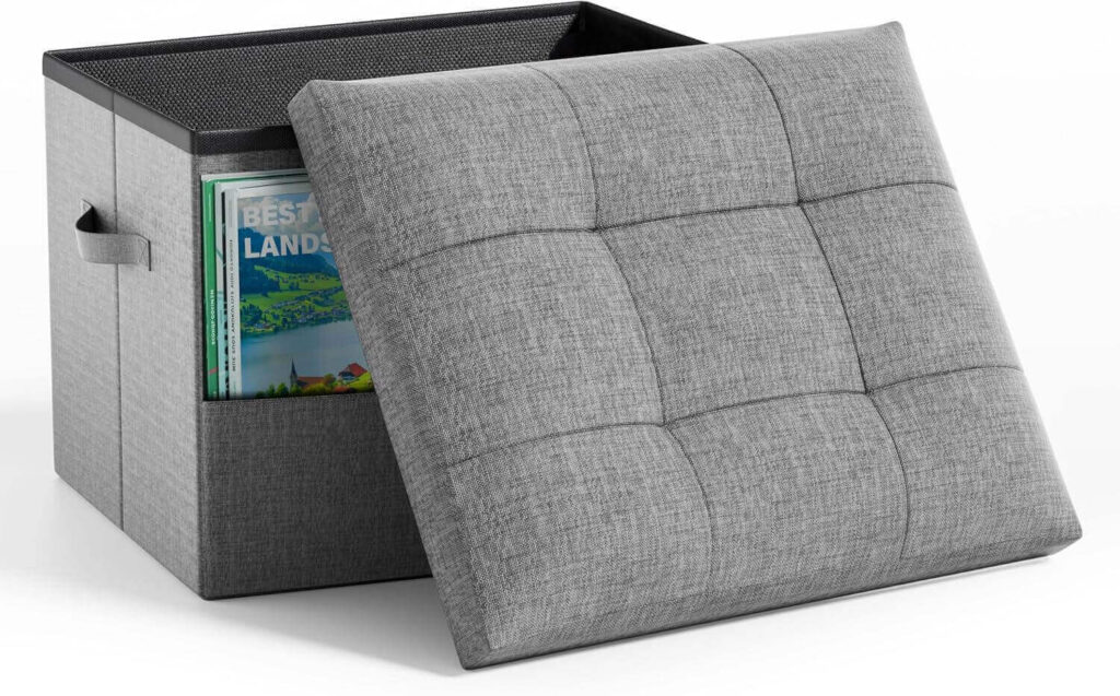 Bring comfort and clever storage to any room with this linen-style ottoman, featuring thick foam padding and a hidden 43L compartment for blankets, toys, or books. Its sturdy MDF frame supports daily use as a footrest, extra seat, or small coffee table, while folding flat for easy storage when needed. Customers love the solid build, cushioned comfort, and how practical it is for keeping spaces tidy.