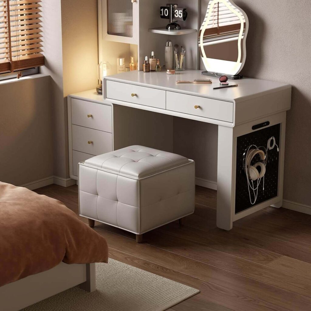 Make your space stylishly functional with this Multifunctional Ottoman Vanity Stool, perfect for lounging, extra seating, or hidden storage. Its sturdy design supports up to 500 lb while keeping your room organized and chic with a velvet finish and wood-toned top. Users love how it combines elegance and practicality, fitting seamlessly into any corner of the home.