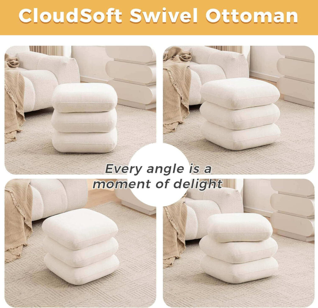 Relax effortlessly with this 360° Swivel Square Ottoman, perfect as a footrest, vanity stool, or extra seating. Its soft chenille fabric and rotatable top provide customizable comfort while staying stable on any surface. Customers enjoy its versatile design and lightweight, tool-free setup, making it a practical and stylish addition to any room.