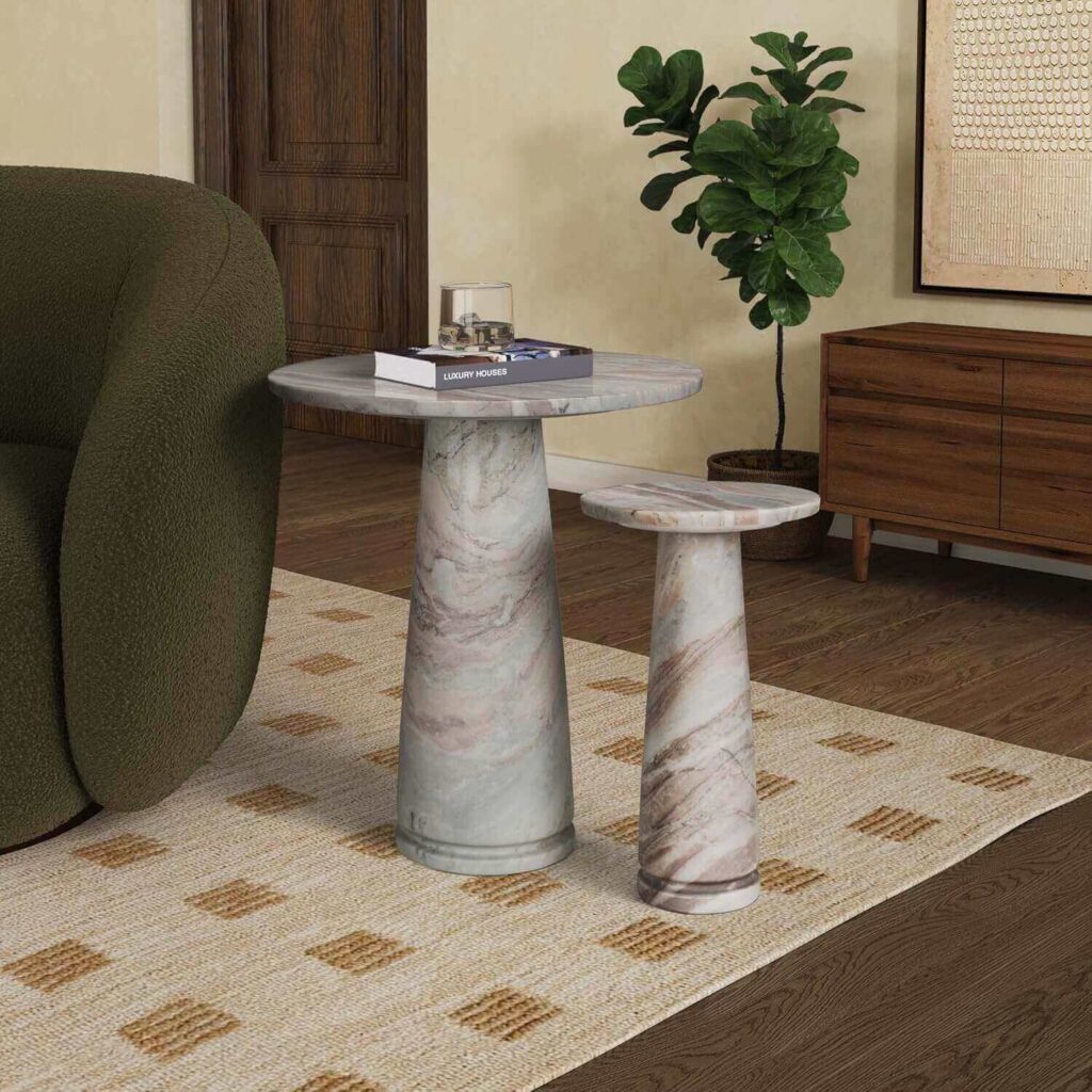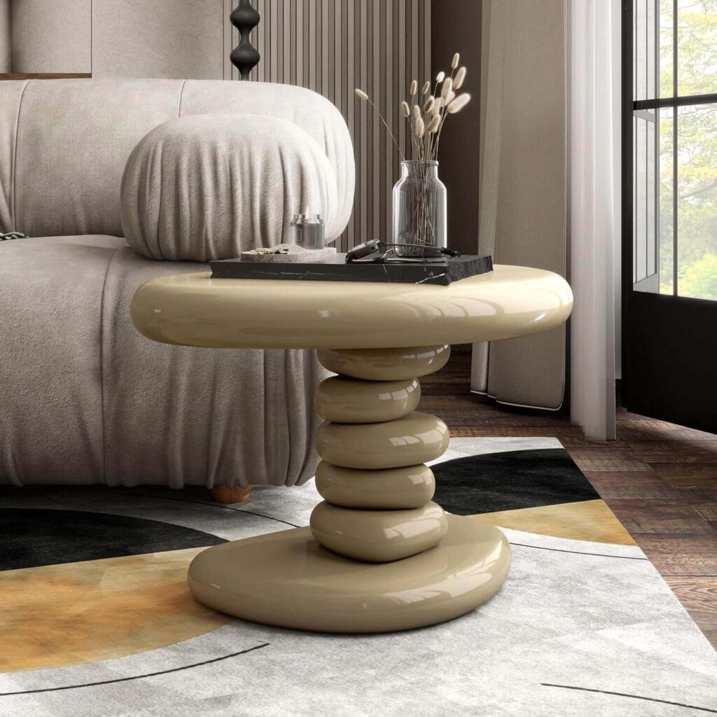 This pedestal end table combines sculptural artistry and modern design, inspired by the natural balance of river stones. Its high-gloss, durable surface is easy to clean, while the stable base ensures reliable everyday use. Customers love the unique style, glossy finish, and how perfectly it fits modern living spaces.