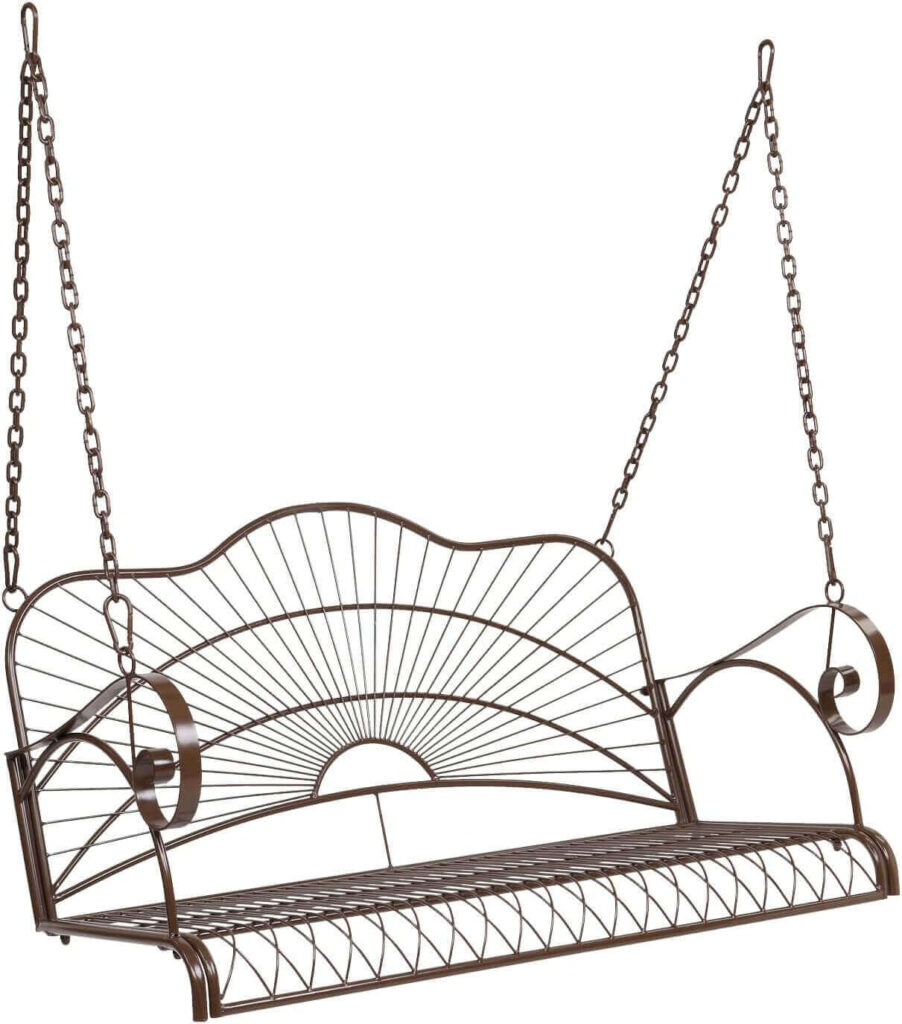 A lovely way to upgrade a porch or backyard seating area, this wooden swing combines comfort with a clean, polished look. The adjustable chains and ergonomic seat design help create a more relaxed sitting position for everyday use. Buyers have appreciated its sturdy build, attractive finish, and the comfortable, worry-free seating it provides.