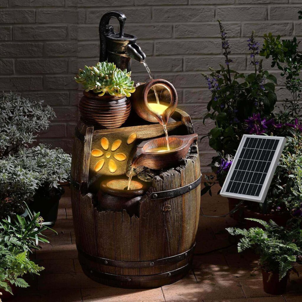Bring a cozy, countryside feel to your outdoor space with this vintage barrel solar fountain that gently cascades water through rustic tiers. The solar-powered design with optional plug-in support keeps the flow steady while creating a soft, relaxing water sound. Many find it well-made, easy to install, and a charming focal point that performs beautifully right out of the box.