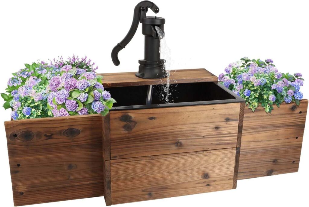 Add rustic charm to your garden! This hand-pump style wooden barrel fountain blends vintage appeal with easy setup and durable liners. Buyers love how it enhances patios and front yards while adding a peaceful, decorative water feature.