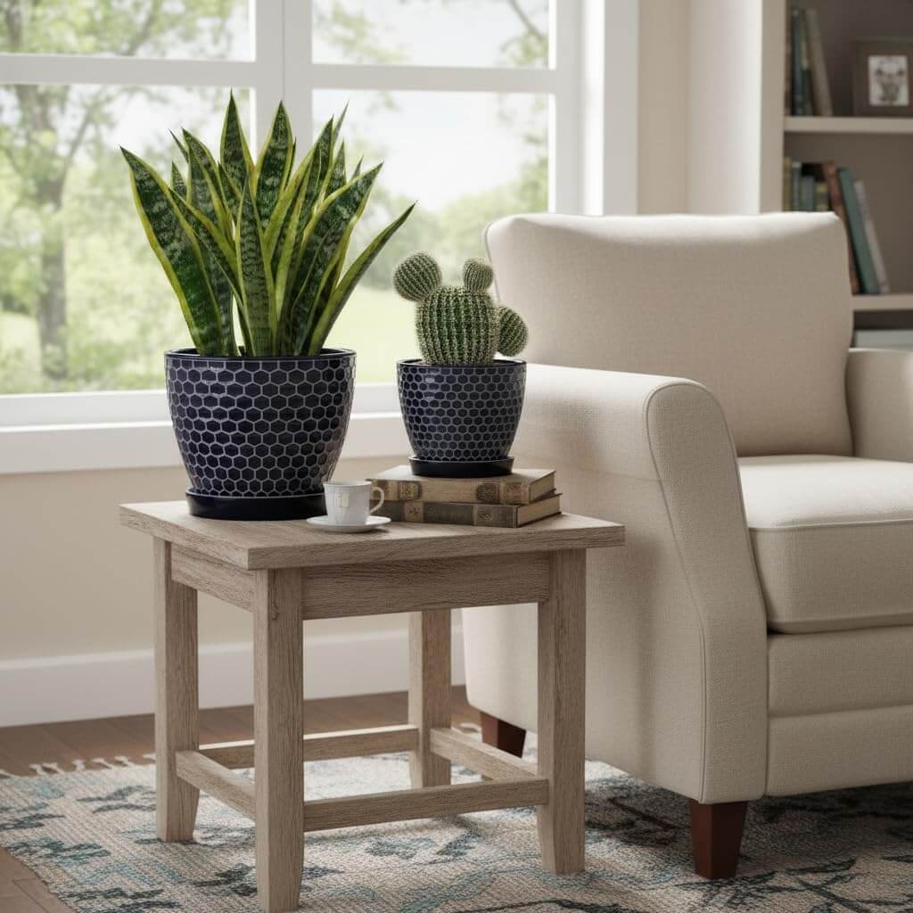 Brighten any space with this Set of 4 Ceramic Succulent Planters, featuring a clean, modern design ideal for small aloe, snake plants, or seedlings. Each pot includes a drainage hole with a matching saucer to keep surfaces tidy while promoting healthy plant growth. Valued for their sturdy construction and careful packaging, these planters are a reliable and stylish choice for both indoor and outdoor greenery.