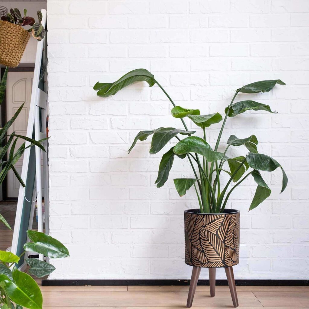 Elevate your indoor greenery with this Handcrafted Fiberclay Planter with Stand, featuring a stylish leaf design and sturdy wooden legs for modern décor. The set includes a drainage hole, mesh net, and ceramic fillers to keep plants healthy while adding an artful touch to any room. Appreciated for its solid build and stylish finish, it offers a high-end look at a great value for plant enthusiasts.