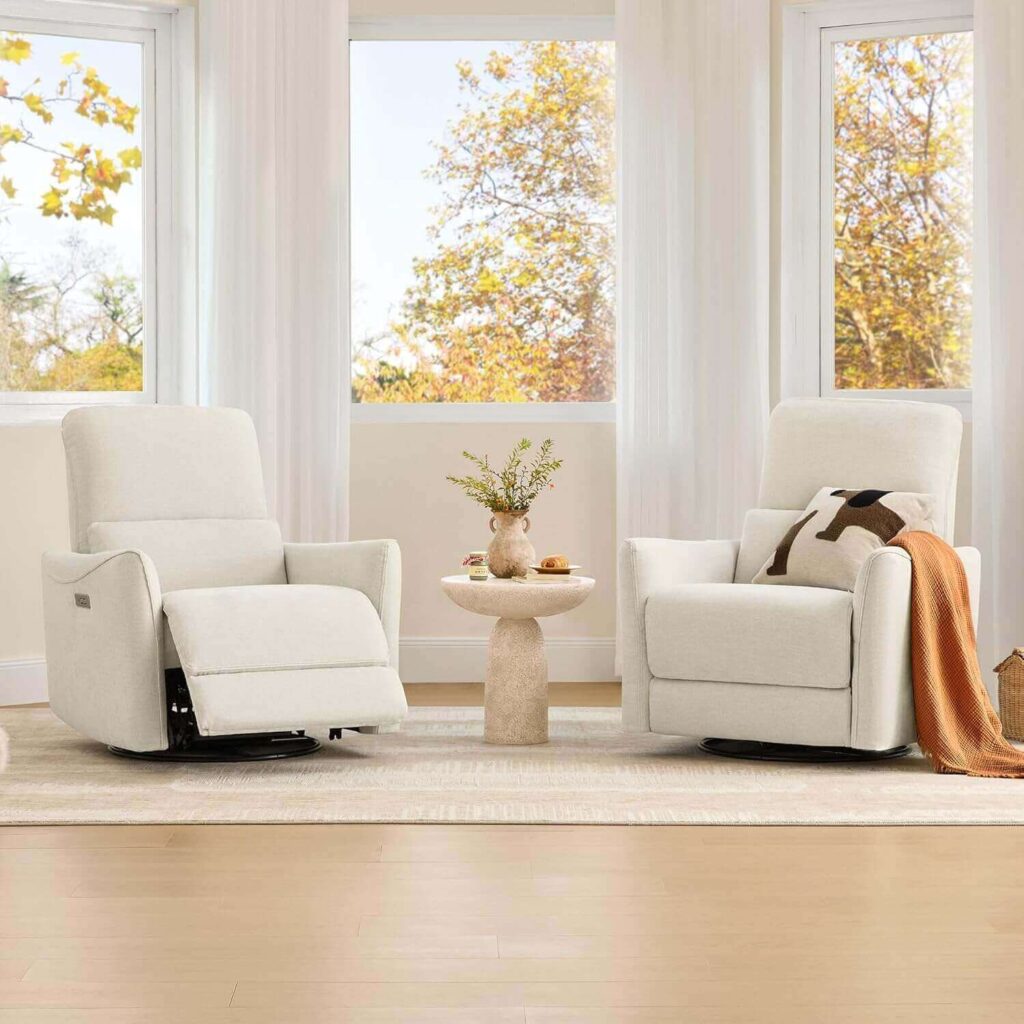 This power glider recliner quickly becomes the most-used seat in the nursery thanks to its smooth swivel, gentle gliding, and quiet push-button recline. Assembly is simple, and the padded arms, tall back, and supportive lumbar design make long contact naps and feedings feel effortless. The soft fabric holds up well to daily use, while the built-in USB port is a lifesaver during nap-trapped moments. With comfort that suits a wide range of heights and a neutral look that transitions easily to the living room, this chair delivers outstanding value for the time spent in it every day.