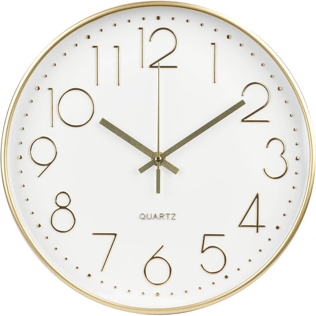 This BAKBRAND gold wall clock brings modern elegance and silent functionality to any space. Its 3D dial, clear glass cover, and lightweight design make it both stylish and easy to hang. Loved for its quiet operation and statement-making shine, it’s perfect for living rooms, bedrooms, kitchens, or offices.