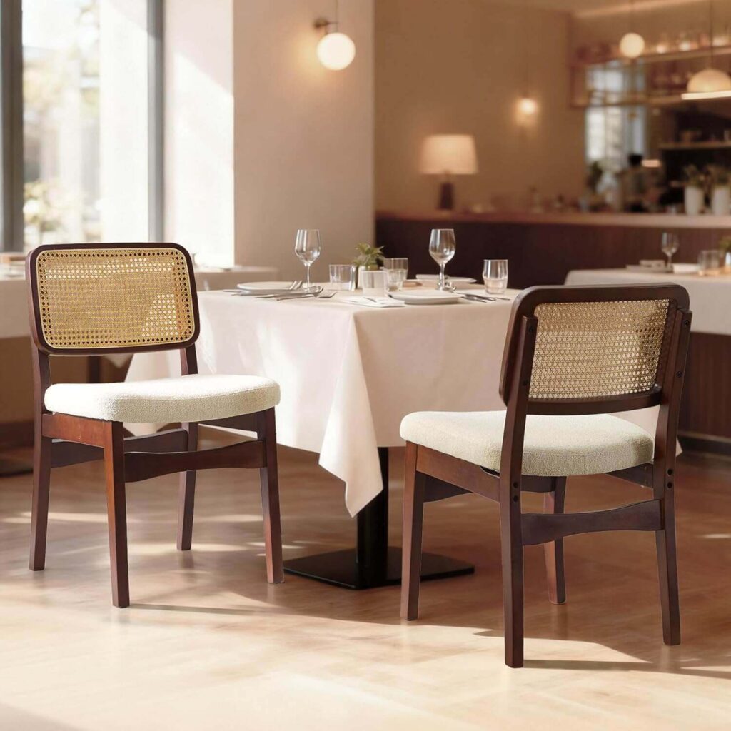 Add boho-chic style to your dining space with the ONEVOG Mid Century Modern Rattan Dining Chairs Set of 2, featuring woven backs and spacious 19.1″ seats. Customers love the sturdy wood frame, adjustable foot glides, and plush fabric options—Brown Chenille or Beige Linen. Ideal for kitchens or dining rooms, these chairs blend comfort, style, and durability effortlessly.