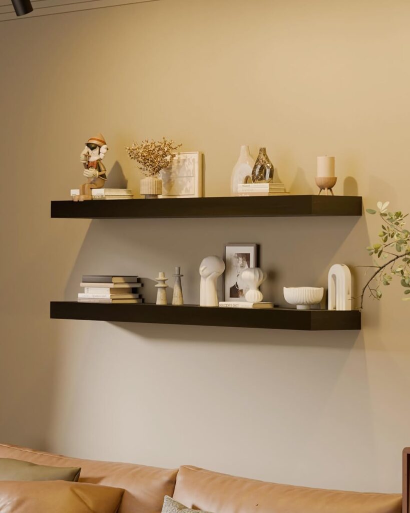 Refresh your space with rustic and modern floating shelves designed for stylish wall decor, home organization, and interior design inspiration. These deep, heavy-duty wood wall shelves are perfect for displaying books, plants, picture frames, collectibles, bathroom storage, kitchen organization, and maximizing vertical space. Ideal for small spaces, apartment decor, modern farmhouse style, minimalist homes, cozy aesthetic rooms, and Pinterest-worthy home styling, they create a clean, clutter-free look.