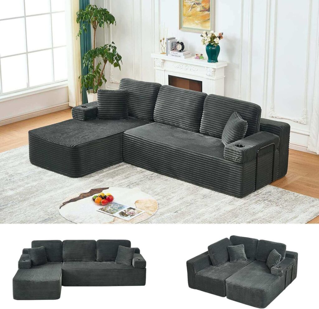 Make your space instantly cozy with this modular plush corduroy sofa, arriving fully pre-assembled for zero effort setup and cloud-like comfort. The high-resilience foam and deep cushions offer lasting support, while the soft, stylish fabric feels luxurious and inviting. Loved for its easy setup, supportive feel, and flexible design, it’s perfect for gaming, sports, or lounging in any room.
