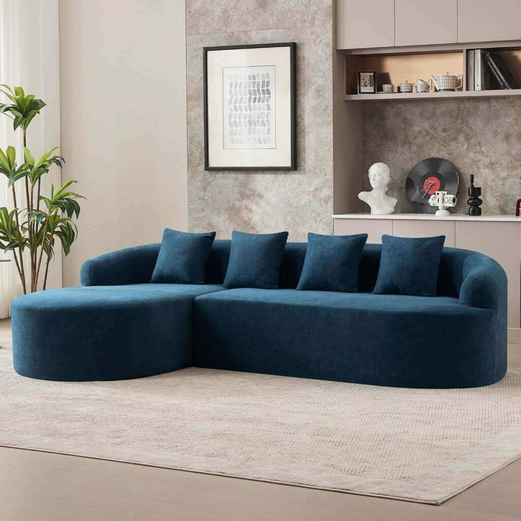 Add style and comfort to your home with this curved, boneless modular sofa, perfect for lounging, napping, or even converting into a sofa bed. The soft chenille fabric and high-strength memory foam provide lasting comfort, while the deep seat and included lumbar pillows create a cozy retreat. Loved for its no-assembly design and plush feel, it’s a favorite for effortless relaxation and modern living spaces.