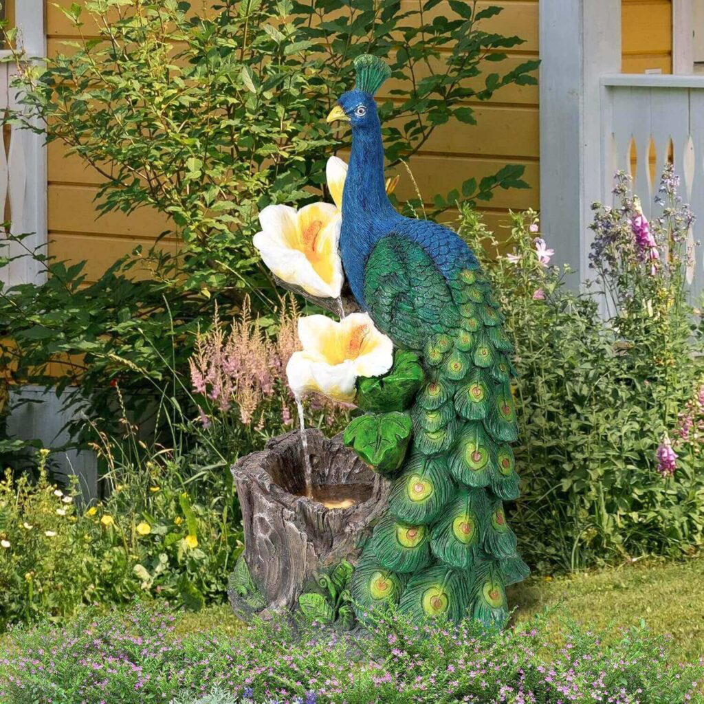 This modern peacock waterfall fountain combines contemporary elegance with nature-inspired charm, creating a serene focal point for any garden, patio, or indoor space. Its gentle cascading water and detailed design provide a calming ambiance perfect for relaxation or meditation. Loved for its high-quality craftsmanship and quiet operation, it effortlessly elevates the tranquility and aesthetic of any setting.