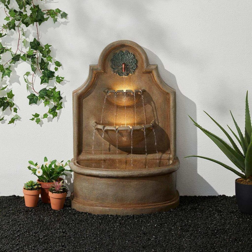 This European-style 3-tier fountain adds timeless elegance with carved details and a warm antique finish. The gentle water flow and soft LED lighting are often appreciated for creating a calming, inviting garden atmosphere. Many admire its solid yet lightweight build, easy assembly, and the way it naturally draws attention from both guests and visiting birds.