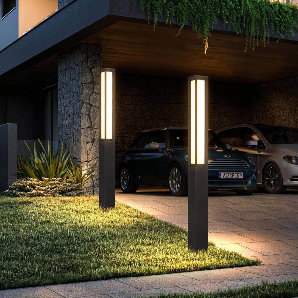 This modern landscape bollard light delivers bright, stable illumination with a warm glow that enhances walkways, driveways, and garden areas. Customers say it looks very stylish and makes a strong visual statement, often receiving compliments for its sleek, contemporary design. Reviews mention the solid aluminum construction feels sturdy and well-made, even after months of outdoor use in different weather conditions. Many appreciate the wide, non-glare light coverage and describe it as a dependable, high-quality option for hard-wired outdoor lighting.