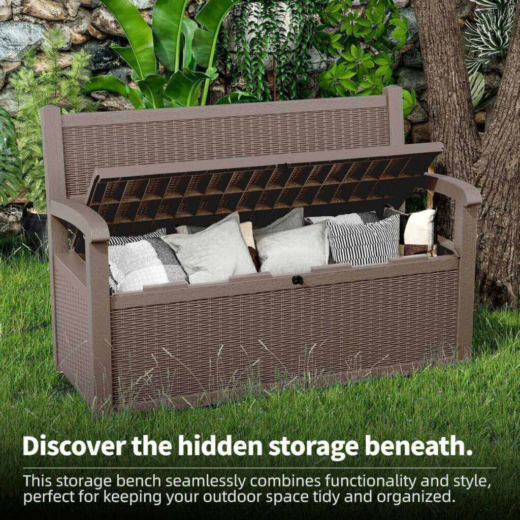 The Devoko 80 Gallon Lockable Outdoor Storage Bench offers a perfect balance of aesthetics and functionality. Its easy assembly, ample storage, and stylish look make it a top pick for anyone needing secure, attractive outdoor storage box.