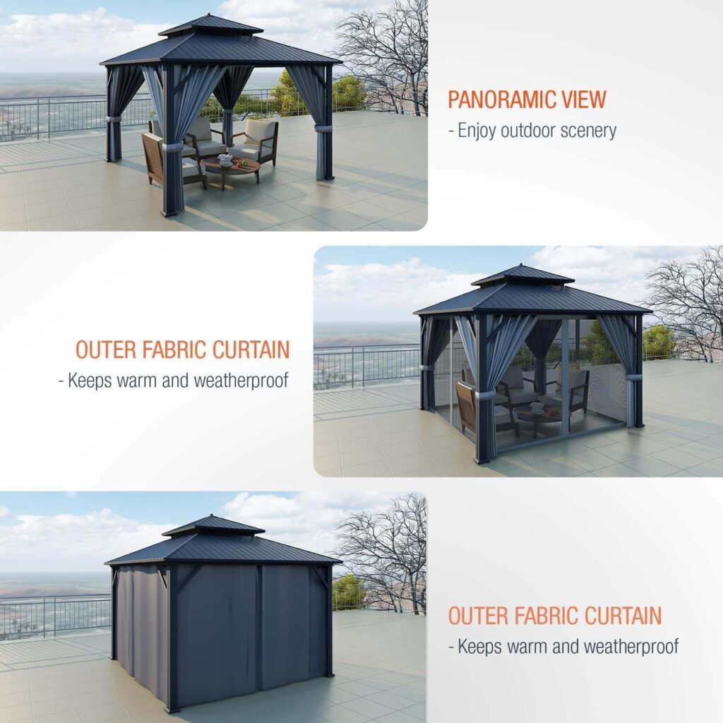 This all-weather galvanized gazebo is a high-quality, reliable outdoor shelter with a striking presence. If you’re ready for a solid build and don’t mind dedicating some time to assembly, it’s a purchase you won’t regret.