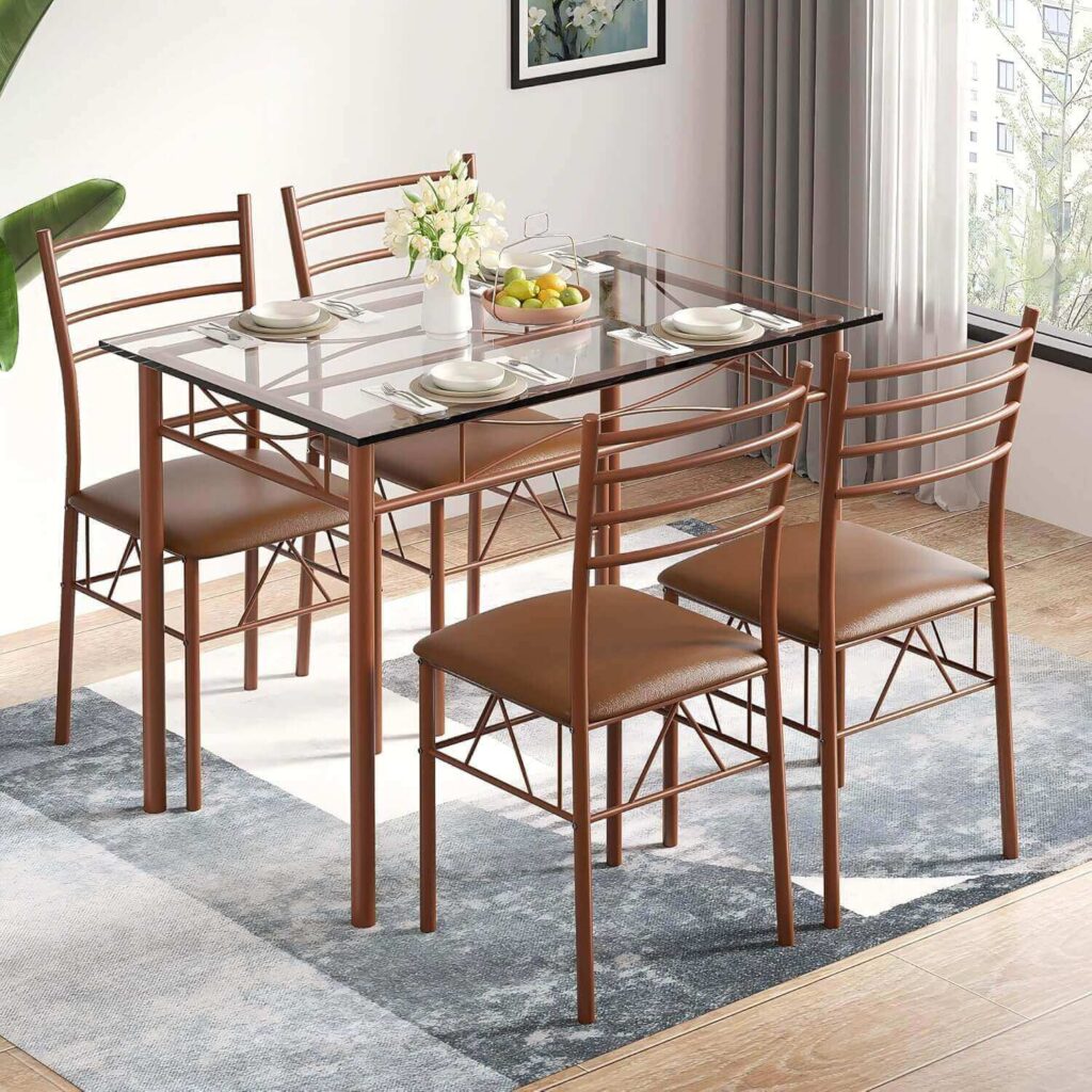 According to many customers, this dining set is stylish, sturdy, and comfortable, fitting perfectly in smaller dining spaces while offering great value.