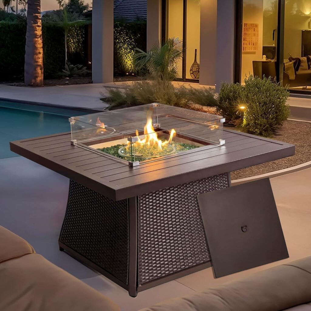 From sleek propane-powered options with hidden tanks to rustic-modern designs that feel like they belong in a five-star resort, these fire pit tables deliver both ambiance and aesthetic. Perfect for hosting late-night chats, cozy dinners, or just unwinding under the stars — they’ll instantly become the heart of your backyard.