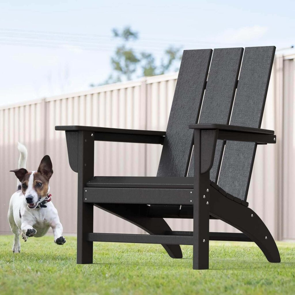 The POLYDUN Modern Adirondack Chair features a wide, supportive backrest, curved seat, and 4.63-inch armrests for ergonomic comfort and daily convenience. Made from high-density Poly Lumber with marine-grade stainless steel, it’s weather-resistant, durable, and supports up to 385 lbs. Quick to assemble in just 15 minutes, it’s easy to clean and maintain for year-round outdoor use. Customers love the heavy-duty quality, stylish look, and comfort, praising it as a great value that exceeded expectations.