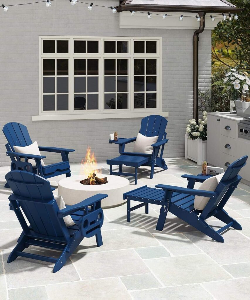 These folding Adirondack chairs (Set of 4) is made from weather-resistant, UV-proof HDPE, perfect for patios, gardens, and poolside decks. Its oversized seat, high back, wide armrests, and hidden cup holder provide ergonomic comfort and convenience. Quick shipping, easy assembly, and great quality make it a standout, with customers noting it rivals teak chairs that lasted 10+ years. Worth the price, sturdy, and stylish—skip the cheaper alternatives!