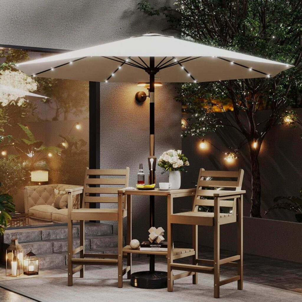 The SERWALL 3-piece Adirondack Bar Set includes two bar chairs and a spacious table, made from durable, weather-resistant HDPE and Textilene. Chairs feature breathable sling seats, built-in footrests, and 28.5″ seat height for unobstructed views. The table offers ample space for drinks and snacks, and the set is UV-resistant and easy to maintain. Customers praise its sturdy build, comfort, and stylish design, perfect for patios and marine environments.