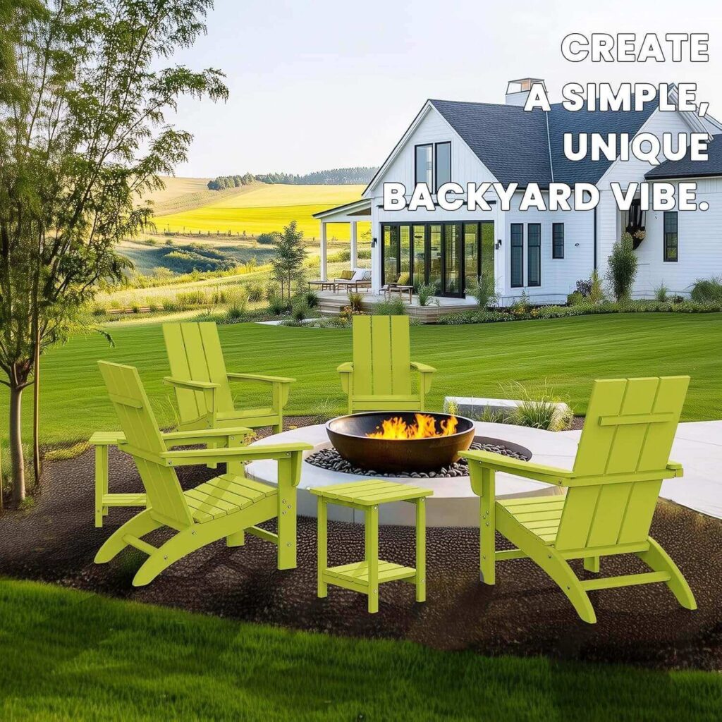 These Adirondack chairs(Set of 4) are built with durable, SGS-tested HDPE that mimics real wood, resists fading, and withstands sun, snow, salt spray, and strong coastal winds. Wider armrests, adjustable cup holders, and an ergonomic 104° recline make them sturdy, comfortable, and easy to assemble, with a foldable design for simple storage. The chairs maintain consistent color and texture, enhancing overall patio aesthetics. Customers praise their solid build, easy setup, and great value, with many buying additional sets. Reviewers also highlight excellent customer service, noting quick replacements for minor issues and a smooth, helpful response.
