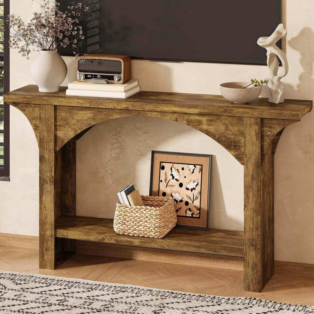 This 55-inch farmhouse console table (Color:Rustic Brown) brings rustic charm with its unique arched design, making it a stylish addition to entryways, hallways, or behind sofas. Crafted from durable MDF with a scratch-resistant tabletop and reinforced frame, it’s sturdy and perfect for everyday use. The built-in lower shelf offers extra storage for books, décor, or essentials, keeping your space organized. Customers love its warm wood tone and quality, noting it’s solid, elegant, and easy to assemble.