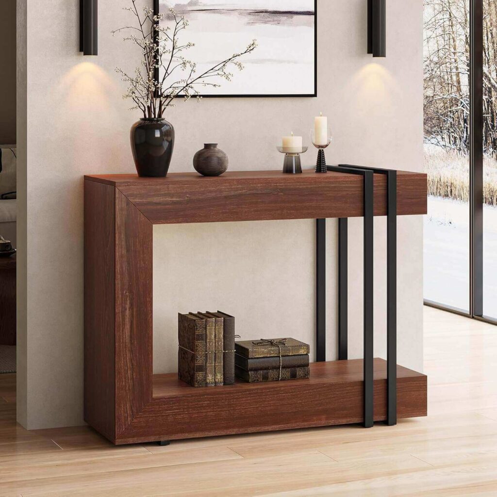 This 4-tier console table combines industrial and retro charm with a geometric metal base and rustic wooden top, making it a stylish addition to any space. Its staggered tiers offer versatile storage for collectibles, books, or everyday essentials. Crafted from thick particleboard and a heavy metal frame, it ensures durability and stability, with adjustable foot pads and anti-tip features. Customers love how well-made and easy to assemble it is, calling it both sturdy and beautiful.