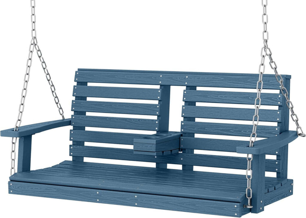The KINGYES Outdoor Hanging Porch Swing combines durable HDPE construction with lasting comfort and stylish design. It’s a reliable, low-maintenance choice that consistently earns high praise from homeowners.