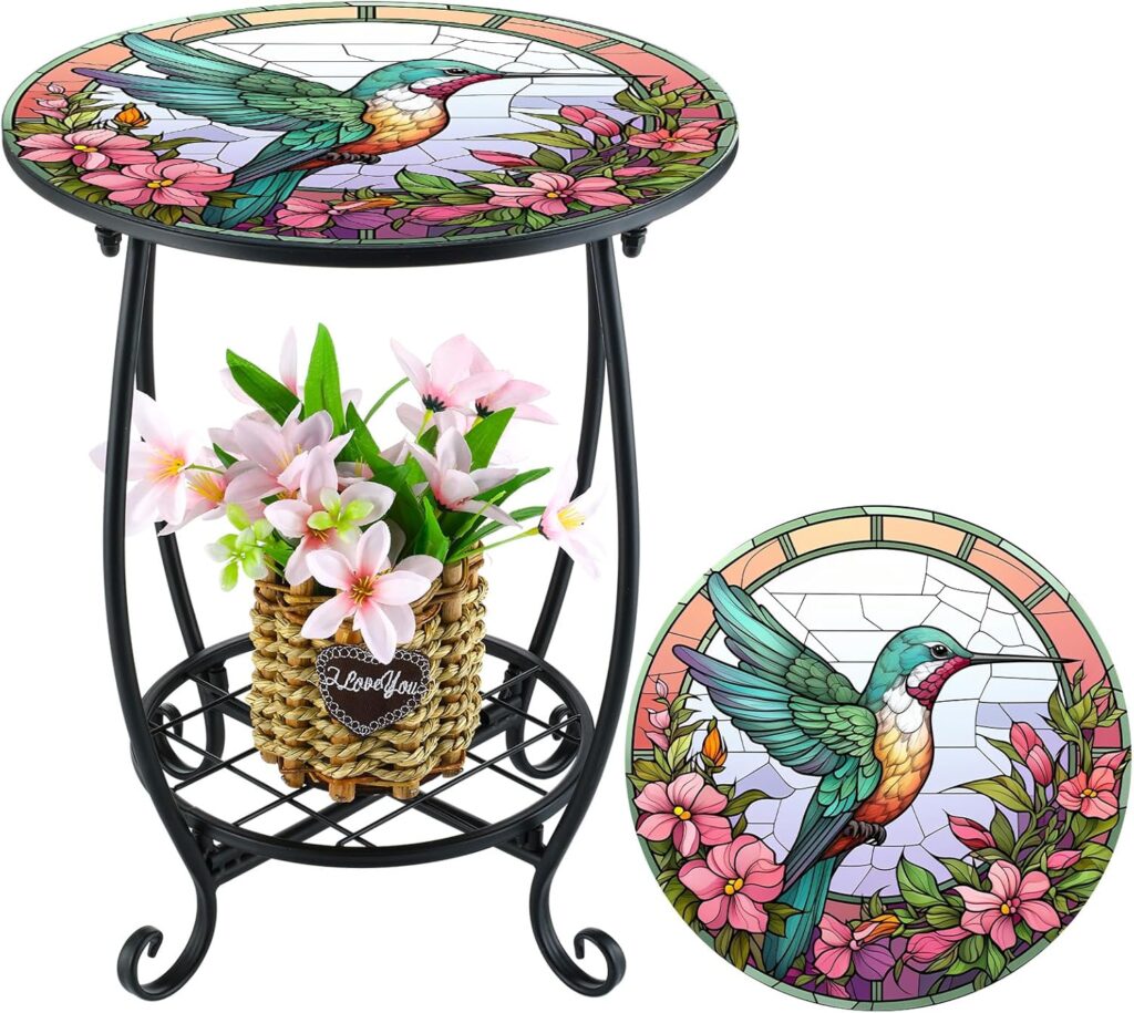 The Cinnvoice Outdoor Mosaic Side Table adds charm and color to any patio or porch with its vibrant hummingbird and sea turtle designs. Its artistic mosaic top brings personality and a cheerful touch to outdoor décor. Easy to assemble and sturdy once adjusted, it’s both functional and decorative. Customers love how it complements themed spaces and quickly becomes a favorite accent piece. It also makes a delightful, thoughtful gift for anyone who enjoys unique outdoor furniture.