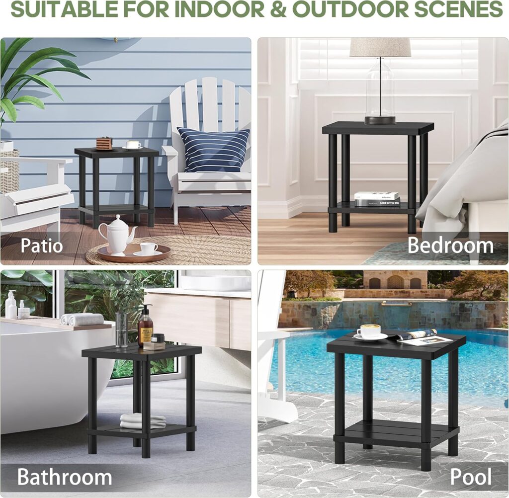 The YEFU Outdoor Side Table perfectly combines durability, functionality, and charm for any outdoor space. With a wood-like finish and sleek design, it adds a stylish touch to patios, porches, or poolside areas. Assembly takes just a couple of minutes with the included tools, making setup effortless. The tables are ideally weighted—sturdy enough to stay put yet light enough to move easily. Their compact size makes them a practical and attractive addition wherever extra surface space is needed.
