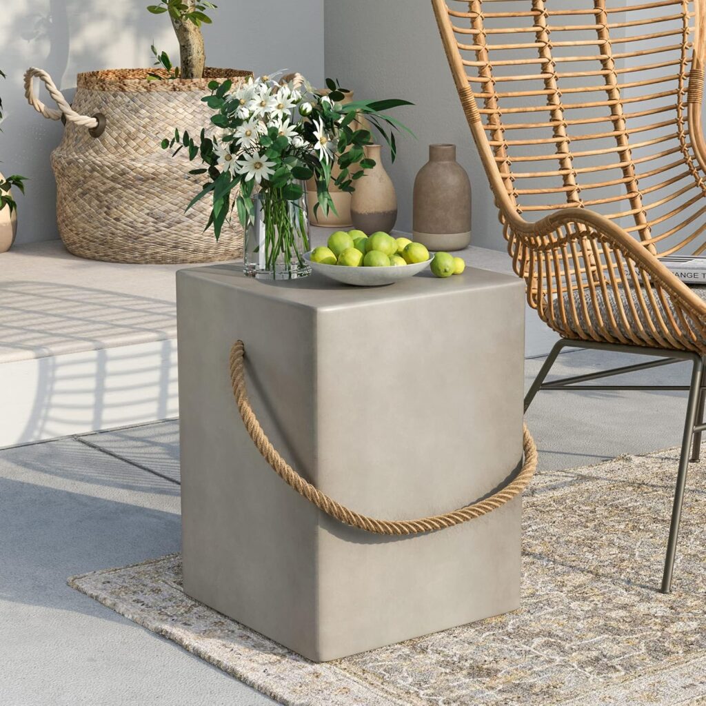 The Safavieh Outdoor Collection Concrete Side Table is a stylish and durable option for both outdoor and indoor use. It offers the look and quality of cement furniture at an affordable price. Users appreciate its versatility on patios or as an indoor end table. To maintain longevity, it’s best to seal the concrete and bring it indoors during freezing temperatures.