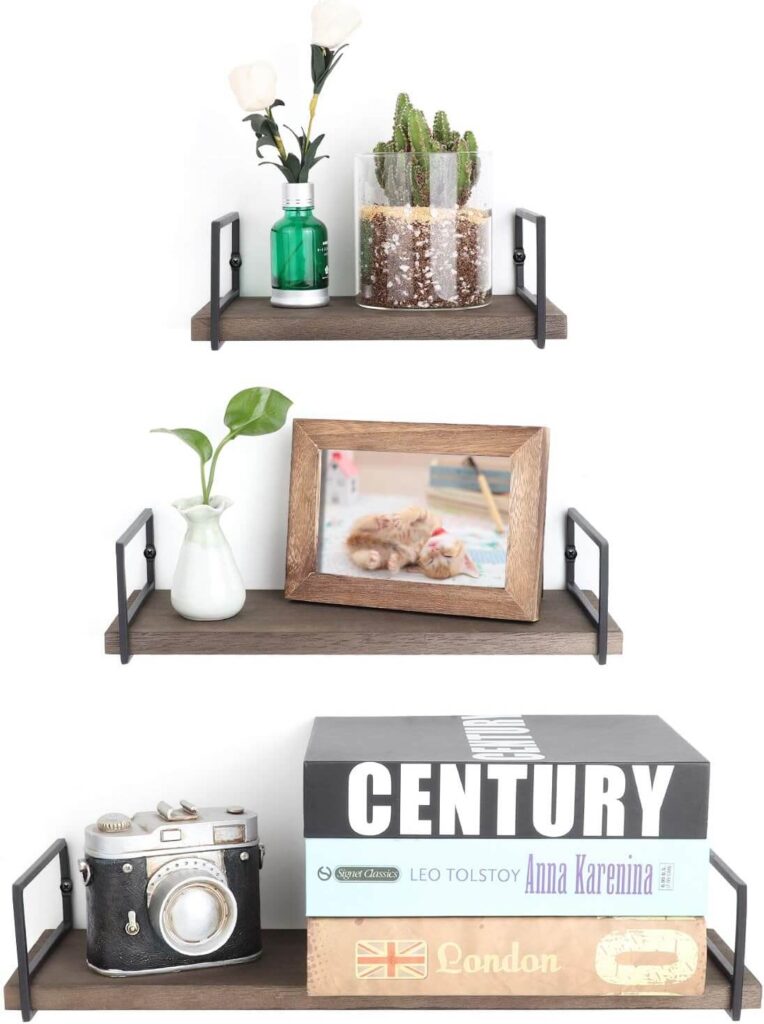 Add rustic charm and practical storage to any room with these versatile walnut wood shelves, perfect for books, plants, or décor. Their industrial design and sleek profile complement kitchens, offices, bedrooms, and more. Customers rave about the easy installation, sturdy build, and stylish look that lasts for years.