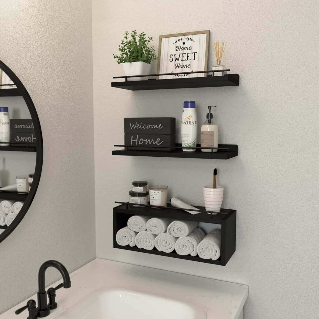 Add a modern touch and smart storage to your bathroom with these WOPITUES floating shelves, featuring a unique cube design and sturdy metal rails. Perfect for toilet paper, toiletries, and décor, they keep items secure while saving floor space. Customers love the easy installation and solid, stylish construction, making bathrooms look organized and polished.
