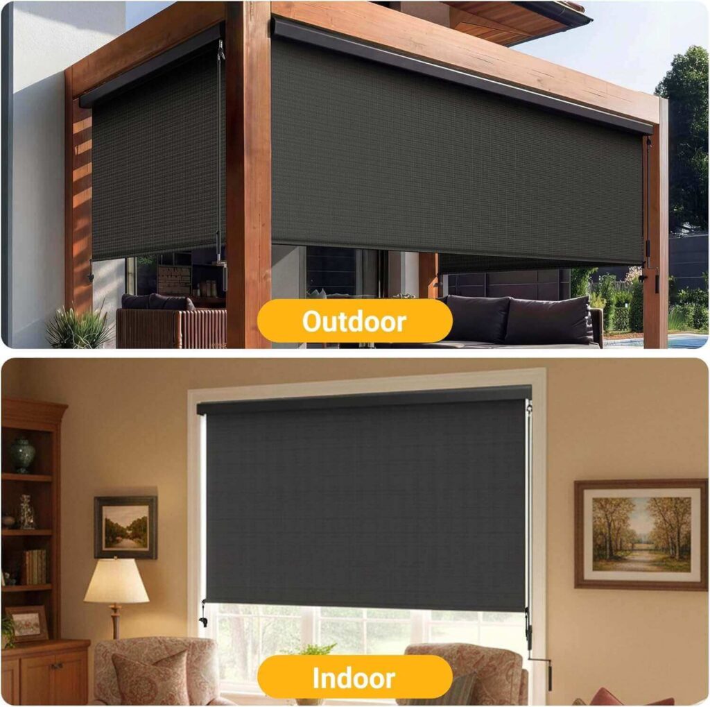 Upgrade outdoor spaces with outdoor roller shades, patio sun shades, and pergola privacy screens designed to block harsh sunlight while keeping patios cooler. These cordless exterior roller blinds offer stylish shade for patios, porches, decks, and balconies. A smart solution for backyard privacy, sun protection, and modern outdoor living.