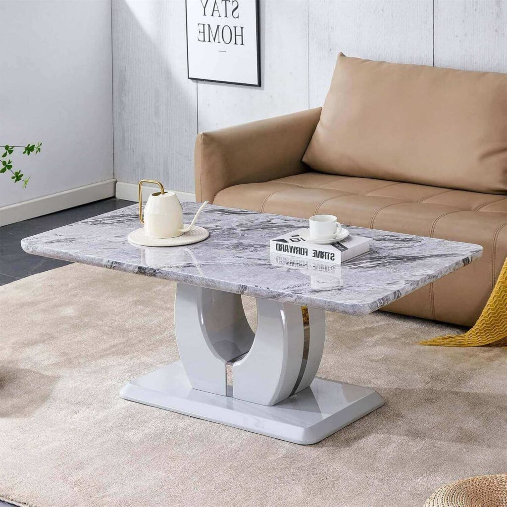 Elevate your living area with this marble-style coffee table, designed with a sleek, luxury-inspired top that creates a striking modern focal point. The artistic, avant-garde shape brings a refined, gallery-like feel while remaining practical for everyday use. Buyers often appreciate how stunning it looks in person, how simple it is to assemble, and how it becomes a beautiful conversation piece in the room.