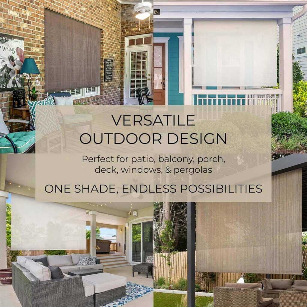 Create a cooler, comfortable outdoor area with this cordless HDPE roller shade, designed to block up to 95% of UV rays while reducing glare and heat. The breathable fabric lets air and light through while maintaining privacy, making patios, porches, and balconies more enjoyable. Reviewers highlight the smooth operation, easy installation, and sturdy construction that enhances outdoor comfort without closing in the space.