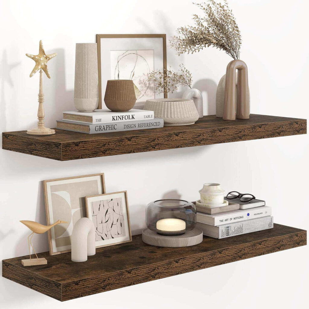 Refresh your walls with these farmhouse-inspired floating shelves, designed with extra depth for books, baskets, towels, or décor. The invisible brackets and sturdy steel support keep them secure while maintaining a clean, modern look. Users appreciate the easy setup, solid feel, and stylish finish that adds storage without sacrificing space.