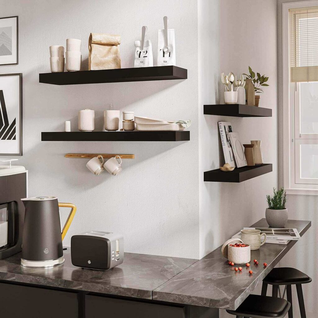 Upgrade your space with these sleek black floating shelves—minimalist design meets practical storage for any room. The concealed bracket keeps the look clean, and users appreciate how quick and simple they are to assemble. Perfect for displaying decor, books, or bathroom essentials, these shelves hold up well while keeping walls tidy.