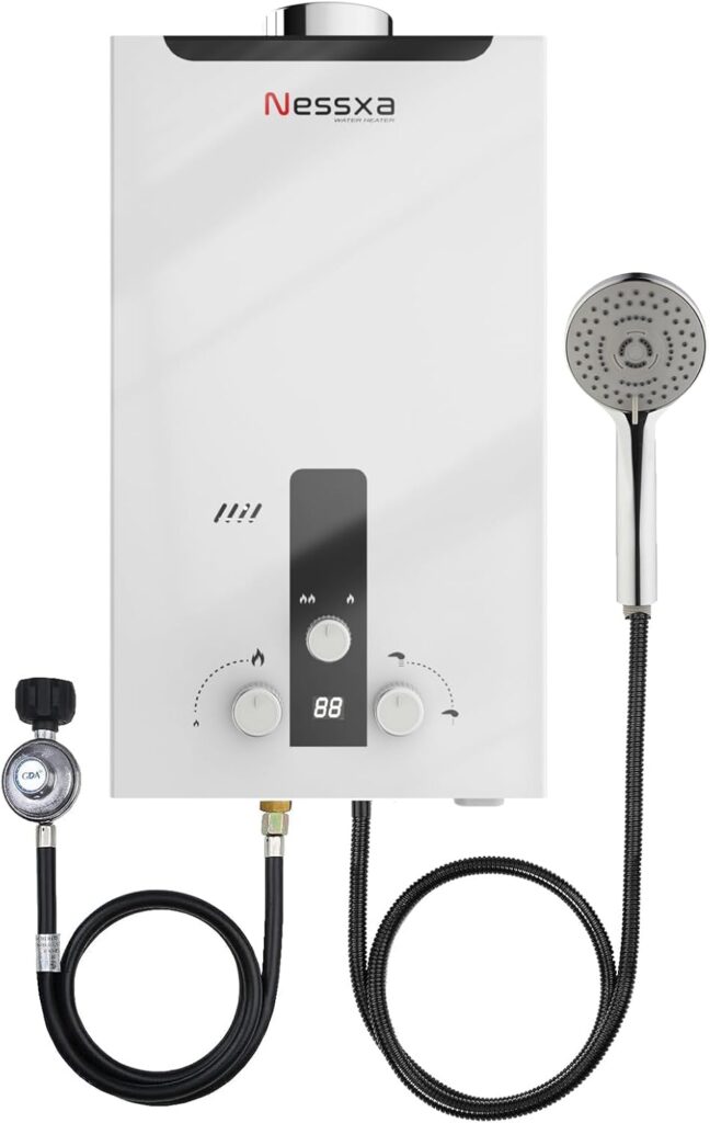 This propane tankless water heater delivers instant, endless hot water with impressive 115,425 BTU power while saving energy and reducing noise. Compact and portable, it’s perfect for RV trips, camping, or outdoor showers, offering steady heat and easy one-button control. Multiple safety protections—overheat, dry combustion, antifreeze, and low-flow—ensure worry-free use. Users love its quick heating, energy efficiency, and space-saving design, making it ideal for convenient hot water anywhere.
