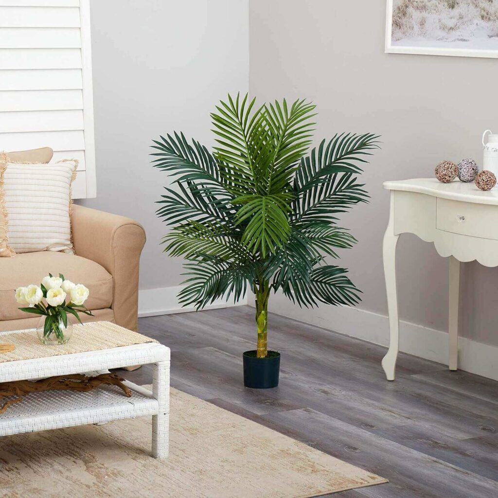 Bring a tropical vibe indoors with this 6.5 ft ultra-realistic silk palm tree, featuring 333 lifelike fronds and three textured trunks. Its breezy, natural movement and detailed coloring make it look remarkably real, perfect for brightening corners or creating a vacation-inspired feel. Users love how authentic and soothing it looks, adding charm and privacy to living rooms, foyers, or porches. Easy to assemble and maintain, this palm offers year-round tropical elegance without any watering or sunlight.