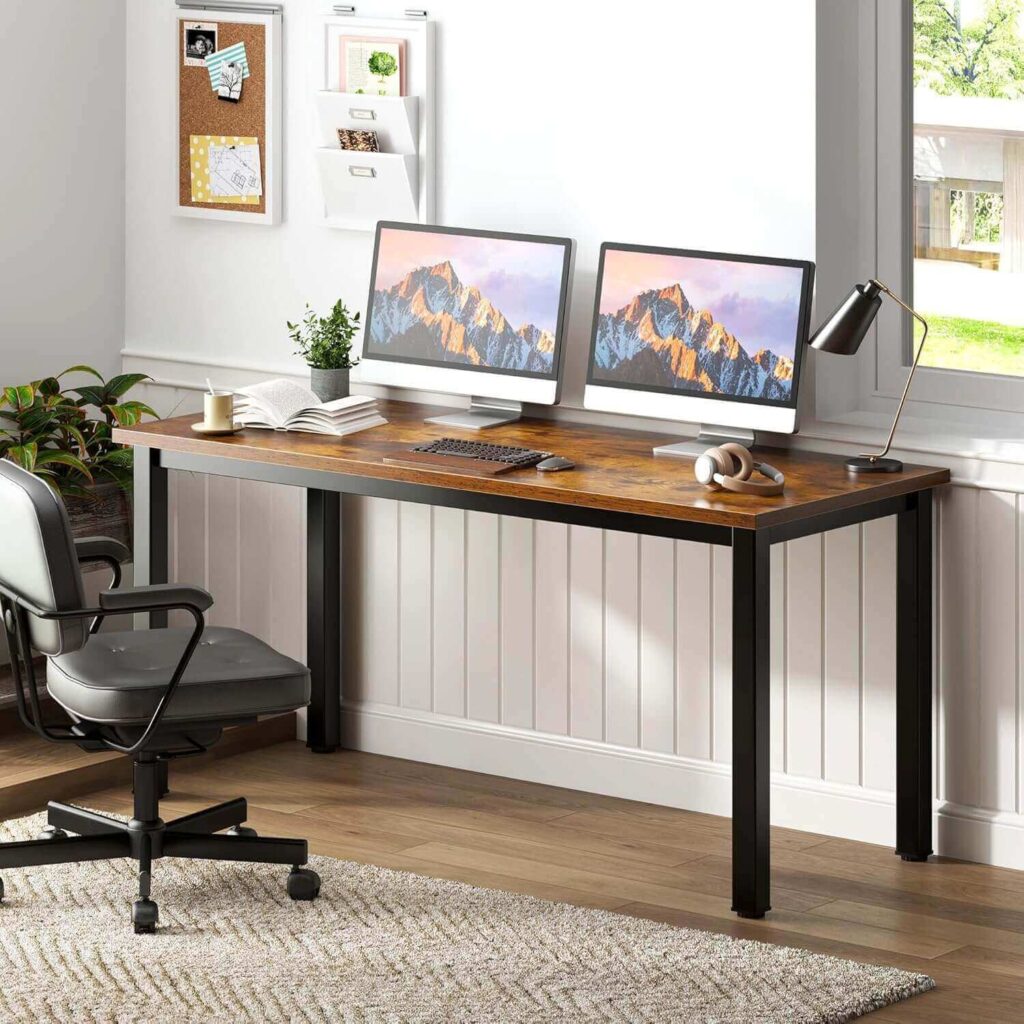 This extra-large workstation desk offers a wide surface that works just as well for home offices, studios, or shared spaces. Built with a heavy-duty steel frame and reinforced supports, it feels impressively stable even under heavier setups. The adjustable leg pads help keep everything level, while the clean design suits both professional and modern interiors. Many users highlight the easy assembly, sleek look, strong build, and excellent value for larger work areas.