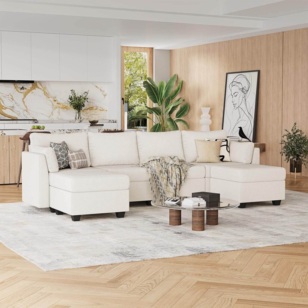 A stylish and versatile choice, this modular sectional adapts easily into L-shape, U-shape, or sofa bed configurations while offering hidden storage for blankets and pillows. Soft, high-density cushions and breathable fabric provide cozy comfort, and the solid wood frame ensures sturdy, long-lasting support. Many find it easy to assemble and appreciate its practical design, making it a perfect centerpiece for any living room.