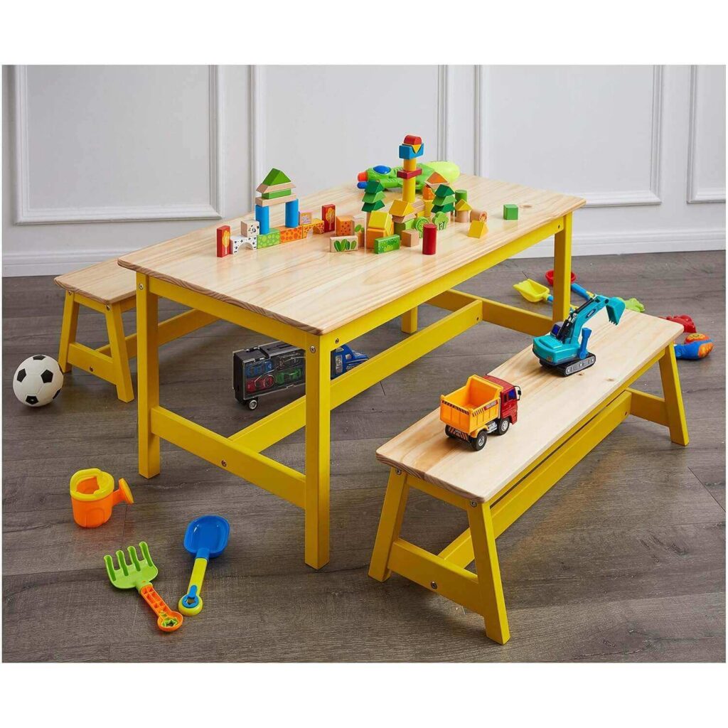 A fun and practical addition for kids, this picnic-style table comes with two matching benches at the perfect height for little ones. Made of durable solid wood, it’s lightweight yet sturdy, letting children move and play freely without wobbling. Many find it easy to assemble and love how it brightens up playrooms, kitchens, or bedrooms.