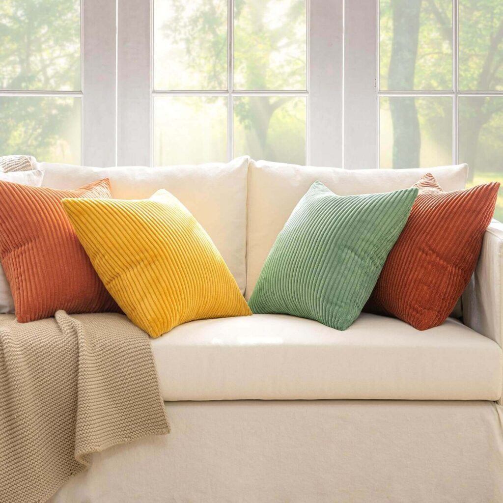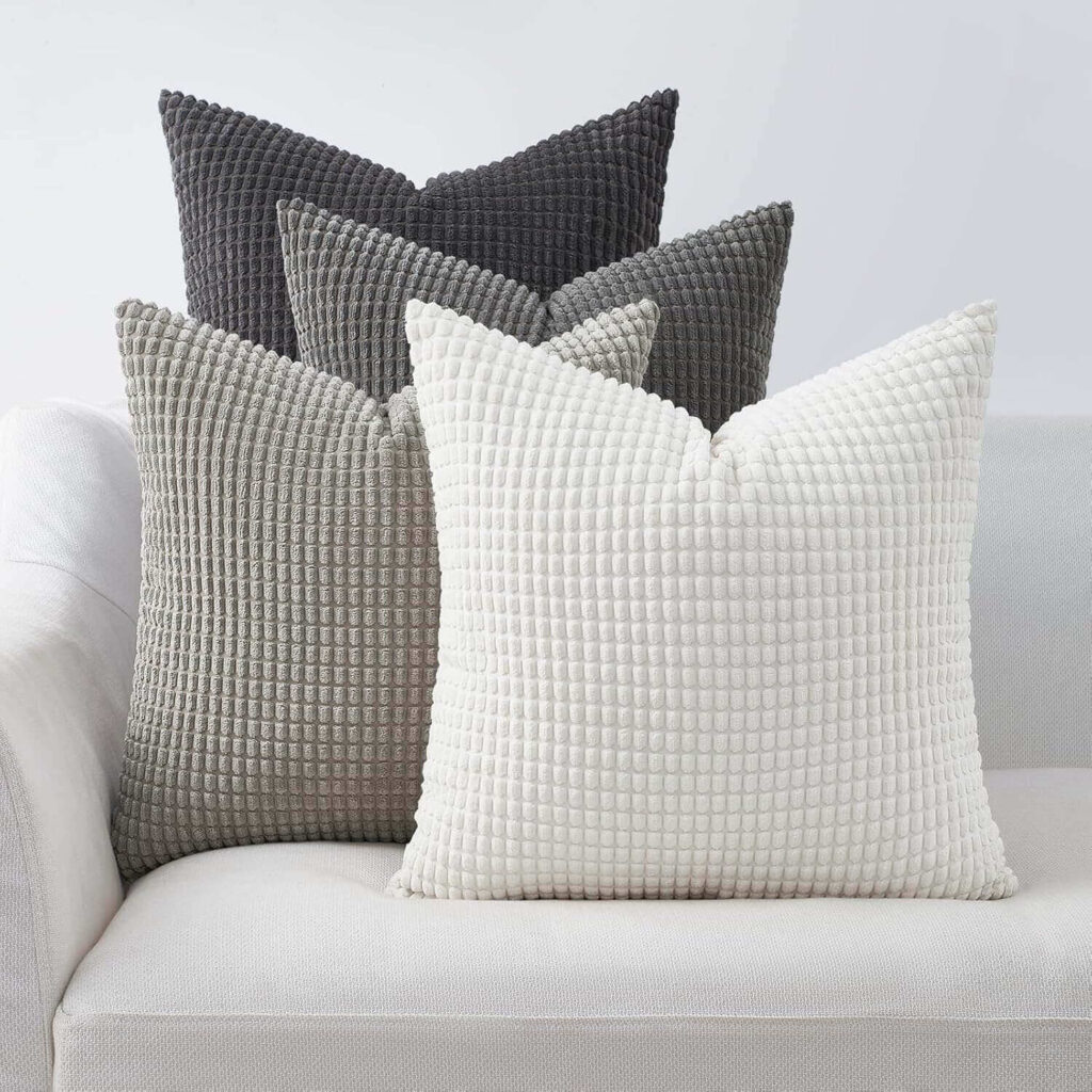 Refresh your living room with this set of 4 corduroy 18×18 pillow covers, perfect for decorative throw pillows and adding a soft, cozy touch. The gradient colors and hidden zippers create a modern, polished look that complements any décor. Customers appreciate the quality fabric and smooth fit, making them an easy, stylish way to update a space.